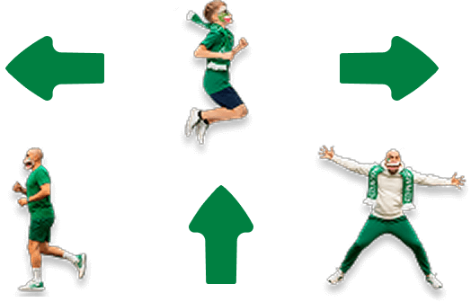- Judėk į šonus, kad nenukristum.